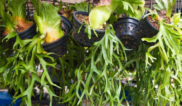 В природе платицериумы растут на деревьях, «обнимая» стволы стерильными листьями. И в домашних условиях он наиболее эффектно смотрится в подвесных корзинах, на корягах или больших кусках коры. В этом случае под стерильный лист обычно подкладывают мох сфагнум или небольшое количество очень рыхлого грунта, богатого органикой.