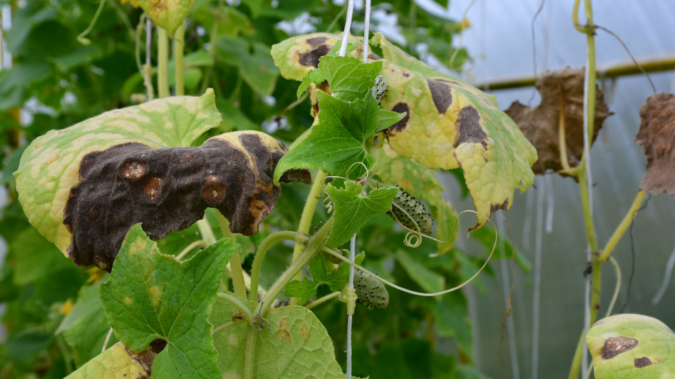 В этом случае поможет мульчирование грядок перегное или торфом – они помогут сохранить влагу в почве гораздо дольше. А еще лучше замульчировать огурцы сеном – оно не только сохранит влагу, но еще и затормозит развитие болезней. В сене активно размножается сенная палочка, которая выделят природный антибиотик субтиллин: он подавляет развитие патогенных грибов, в том числе мучнистой и ложной мучнистой росы.