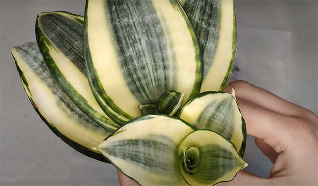 Футура Суперба (FuturaSuperba) – растение высотой 40 — 45 см с массивными расширяющимися к середине листьями светло-зеленого цвета с темными поперечными штрихами;