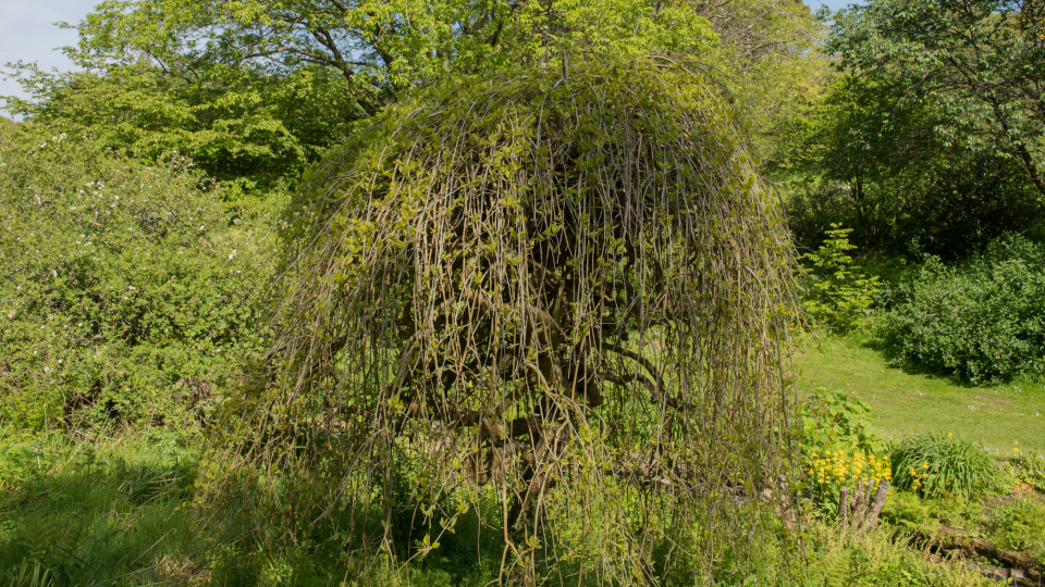 И такие деревья очень красивы – их ветви растут до самой земли, украшая участок не только изумрудным облачком зелени, но и после листопада осенью – красивыми изгибами ветвей.