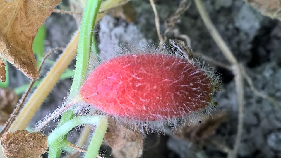 Продолговатые плоды по размеру и форме похожи на маленькие огурчики, но они мельче – длиной 7 – 8 см и диаметром около 3 см. Сначала они зеленые и мохнатые – в этой стадии их можно консервировать также, как и обычные огурцы. К сентябрю они созревают и становятся красными, гладкими, сладкими и очень вкусными – из них получается отличное варенье (2). Внутри ягодки заполнены красной мякотью с мелкими твердыми семенами темного цвета.