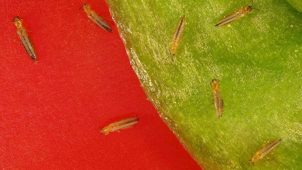 Трипсы – это огромное семейство насекомых, которое включает в себя 6091 (!) вид! Только в России их – 200 видов. Однако не все они являются вредителями – некоторые опыляют растения (кстати, по некоторым данным, именно трипсы в доисторические времена были первыми насекомыми, которые начали опылять растения) (1), другие питаются грибницей, а некоторые и вовсе хищники – охотятся на мелких беспозвоночных. Но большинство все же питается соками растений. И среди них есть один вид, который является наиболее опасным вредителем растений – это западный цветочный трипс (Frankliniella occidentalis).