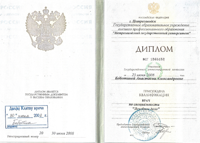 В 2008 г. закончила медицинский факультет Петрозаводского государственного университета.