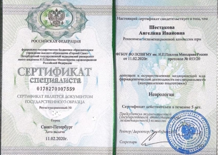 - Первый Санкт-Петербургский государственный медицинский университет им. академика Павлова (Неврология; Медицинский массаж; Актуальные вопросы неврологии);