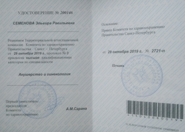 Заведующая амбулаторно-консультативным отделением «Центра профилактики и лечения невынашивания беременности» родильного дома №1 Санкт-Петербурга, врач акушер-гинеколог высшей категории, врач ультразвуковой диагностики высшей категории, ассистент кафедры акушерства и гинекологии при ФГБОУВО «Санкт-Петербургский государственный педиатрический университет», кандидат медицинских наук. Стаж работы 15 лет.