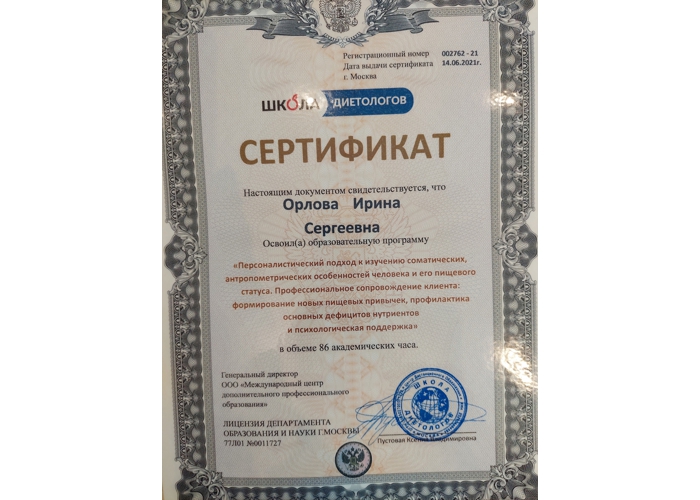 Врач-нутрициолог, преподаватель курса «Стройнеть правильно» в АНО Всероссийская социально-образовательная организация «Учусь в сети». Окончила Ярославскую государственную медицинскую академию, интернатуру по терапии в ГКБ №1 им. Пирогова, ординатуру по ревматологии в НИИ ревматологии РАМН