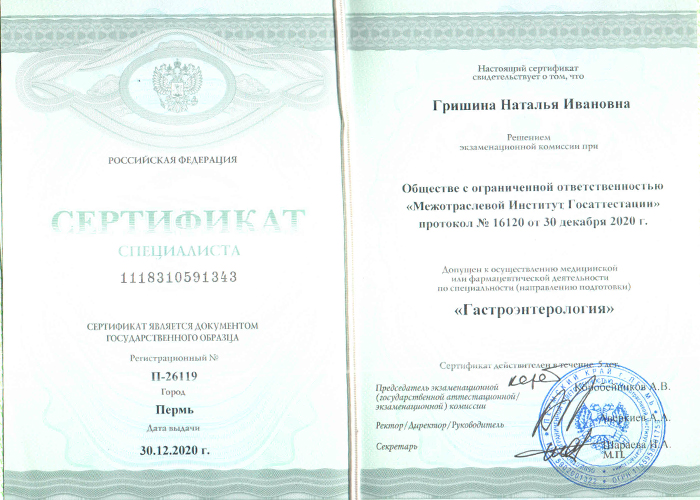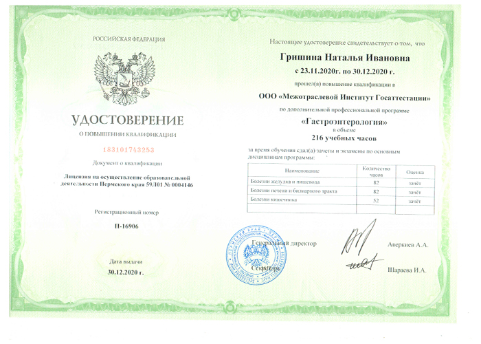 2010 г. — Гастроэнтерология. Циклы переподготовки.