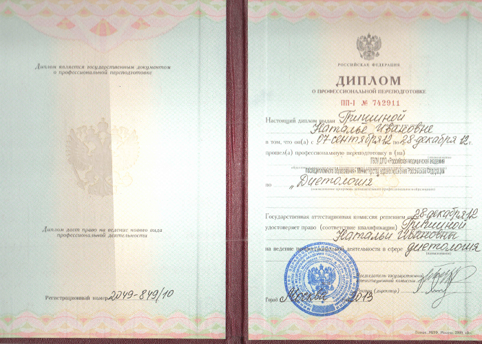 1992 г. — Российский национальный исследовательский медицинский университет имени Н. И. Пирогова. Педиатрия.