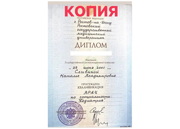 Диплом по специальности «Педиатрия». Сертификат «Педиатрия».
