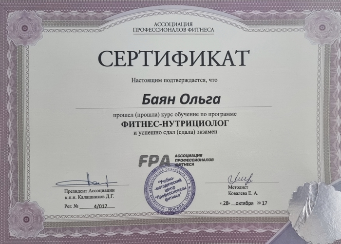 Нутрициолог, консультант по коррекции веса и психологии пищевого поведения, преподаватель АСИЗ (Академии специалистов индустрии здоровья)