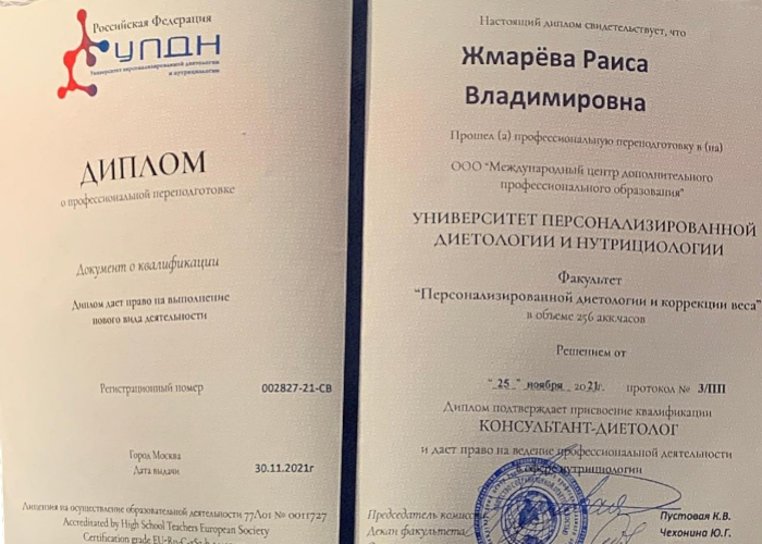 2021−2022 гг. — Университет персонализированной диетологии и нутрициологии (УПДН) и ЦДО «Школа Диетологов» — структурное подразделение УПДН.
