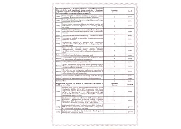 2022 г. — УПДН, факультет психологии, специалист по психологии пищевого поведения поведения.