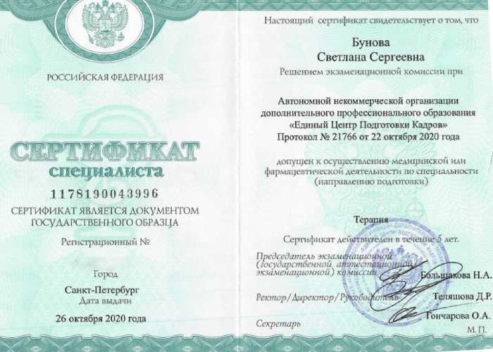 - 2002 г. - Омская государственная медицинская академия. Ординатура.