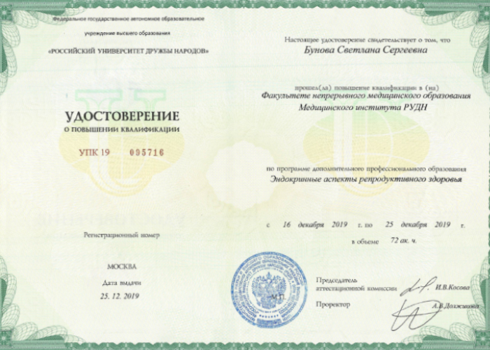 - 2014 г. - «Экспертная деятельность в медицине».