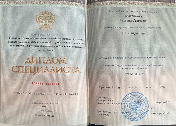 Диплом по специальности «Педиатрия»