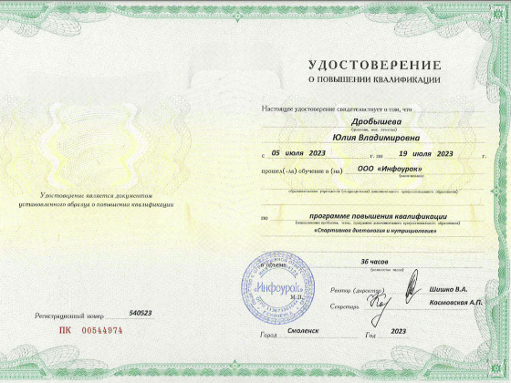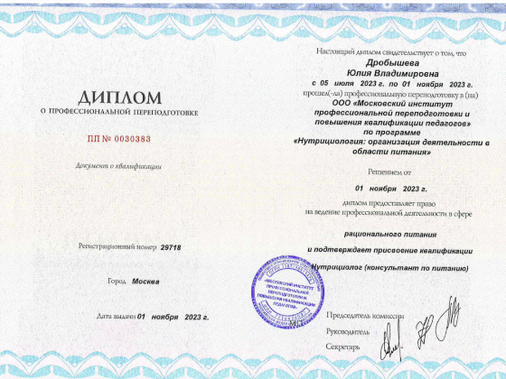 Имеет дипломы и практику косметолога, эксперта по здоровью волос, нутрициолога-диетолога в центре красоты и здоровья.
