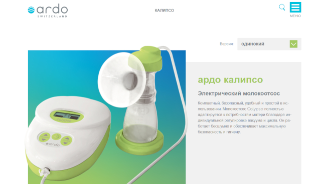 Ardo – швейцарская семейная компания, которая продает реанимационное оборудование, а также специализируется на товарах для новорожденных. Электрический молокоотсос Ardo Calypso работает и от сети, и от батареек. В комплекте есть три разные воронки – можно подобрать наиболее удобную для себя. Есть специальная массажная насадка, которую можно использовать при болевых ощущениях.