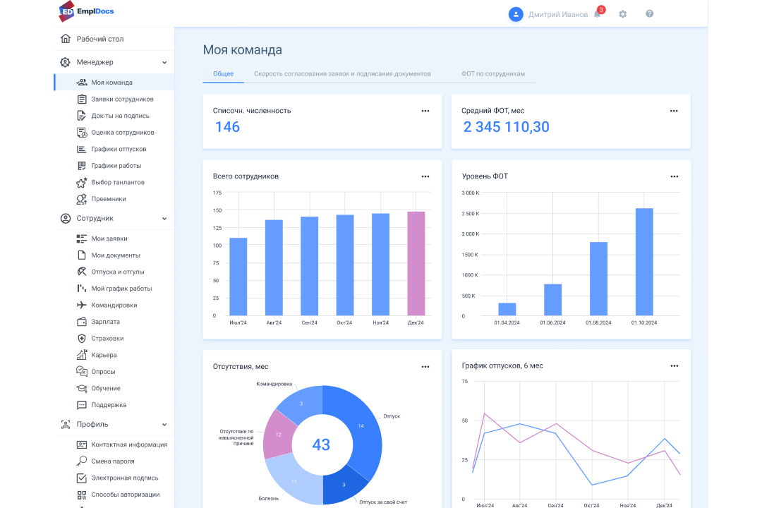 Генеральный директор может подписывать до 1 тыс. документов в один клик, руководители и специалисты HR-отделов — работать с документами и оперативно нанимать кадры из любой точки мира, а рядовые сотрудники — мгновенно получать ответы на кадровые вопросы, следить за статусом запросов и сроками исполнения в Личном кабинете.