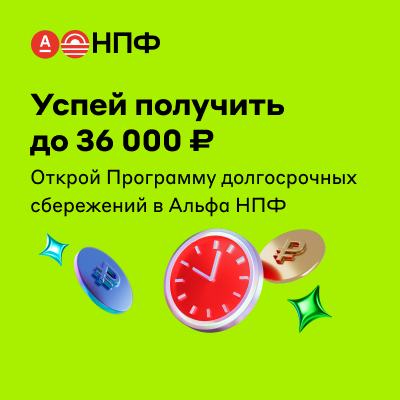 Необходимо внимательно ознакомиться с уставом, правилами формирования долгосрочных сбережений, ключевым информационным документом перед заключением договора долгосрочных сбережений: alfanpf.ru Расчёты не являются публичной офертой, прогнозом деятельности Фонда или гарантией дохода в будущем. Возможно увеличение или уменьшение дохода от размещения пенсионных резервов. Результаты инвестирования в прошлом не определяют доходов в будущем. Государство и фонд не гарантируют доходности размещения пенсионных резервов и инвестирования пенсионных накоплений.