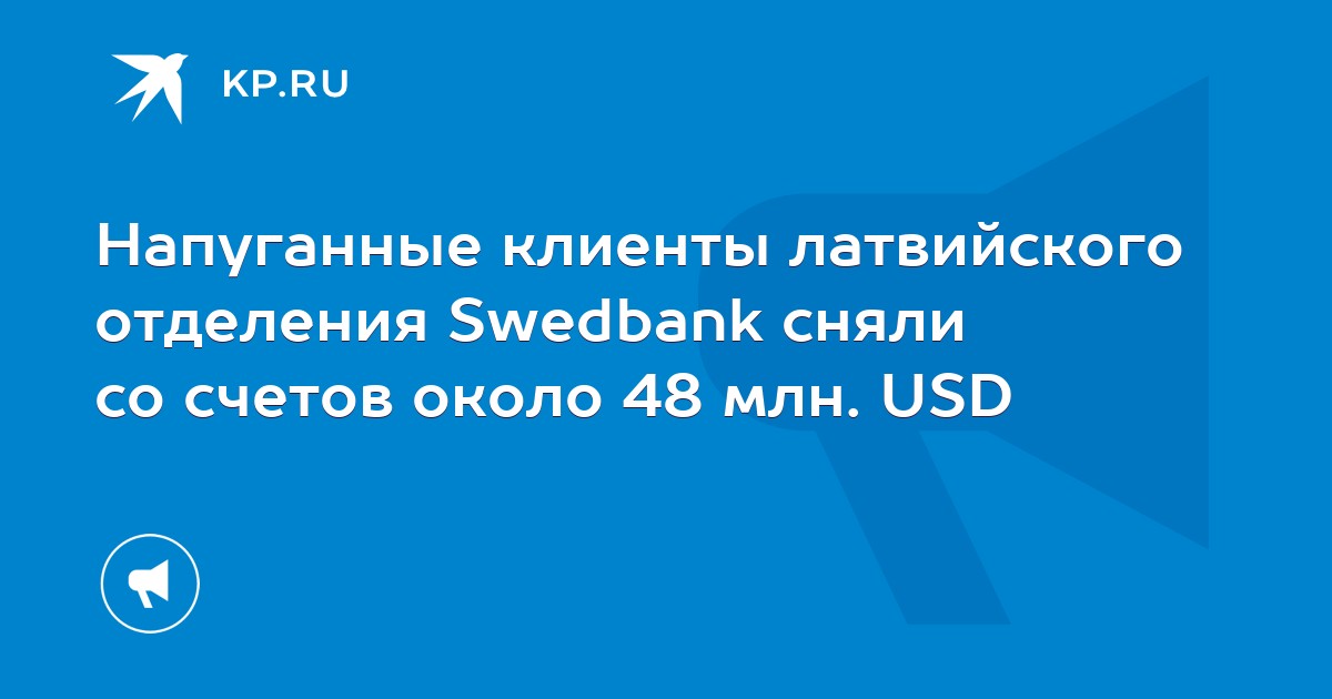 Деньги сняли более 10 000 тысяч клиентов Swedbank, обеспокоенный его возможным банкротством. Однако это никак не повлияет на деятельность банка, так как снятая сумма составляет примерно 1% от общего объема депозита, подчеркнула Кристине Якубовска.