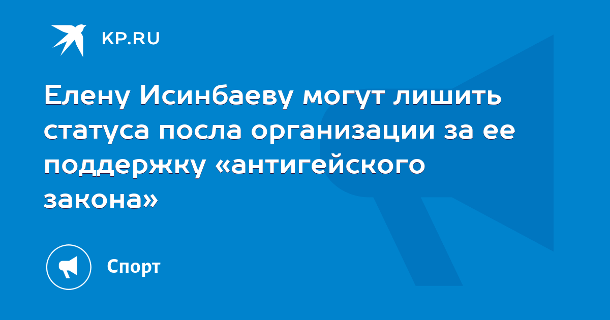 Напомним, во время награждения золотой медалью чемпионата мира по легкой атлетике Елена Исинбаева выразила поддержку антигейскому закону.