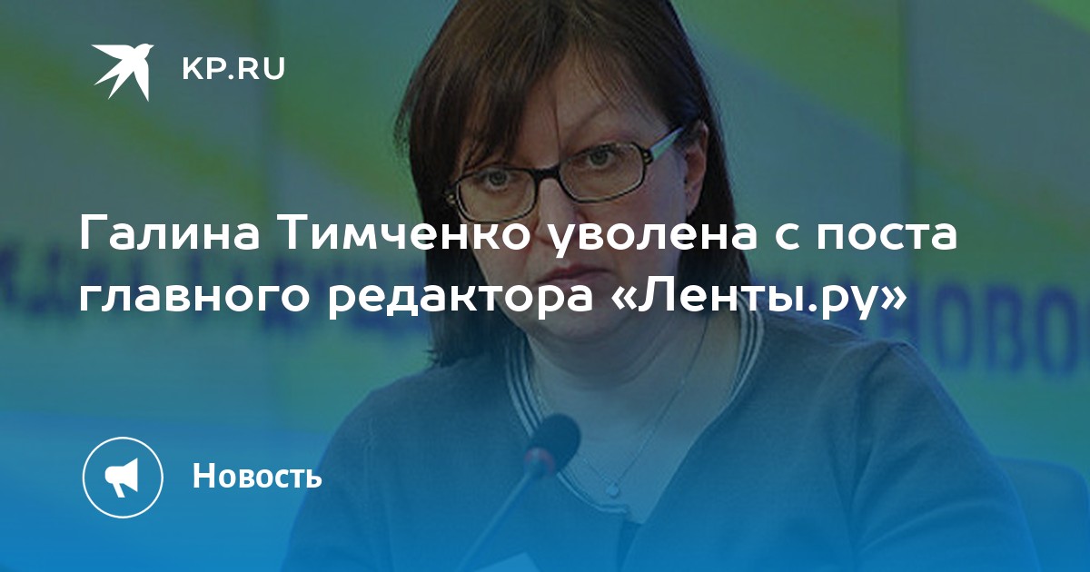 Галина Тимченко с 12 марта покидает пост главного редактора интернет-издания «Лента.ру». Ее заменит Алексей Гореславский, ранее возглавлявший «Взгляд. ру».