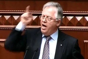 - Но мне странно видеть другое: я удивляюсь, почему тогда по Днепропетровску, по вашему лидеру, вы не привлечете его за сепаратизм к уголовной ответственности? Грубейшее нарушение конституции, проводит референдум о том, чтобы изменить административное устройство Украины, а вы молчите. Вами назначенный проводит незаконный референдум - вы не говорите, что это террористы. Вы дали возможность ему сформировать боевую банду, которая называется "Днепр", и молчите. Что платят деньги за убийство людей. Поэтому я еще раз требую прекратить эту войну против собственного народа.