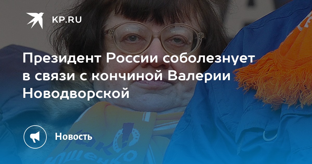 Президент России Владимир Путин высказал свои соболезнования в связи с кончиной оппозиционера, политика, диссидента и общественного деятеля Валерии Ильиничны Новодворской.