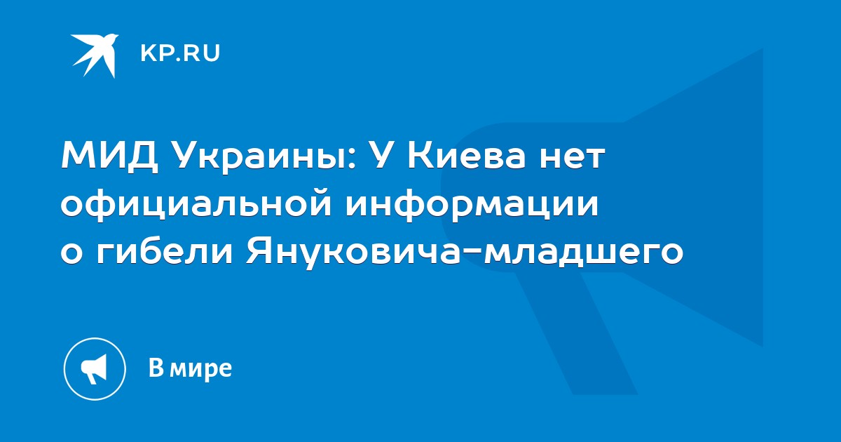 В министерстве иностранных дел Украины пока не могут подтвердить или опровергнуть гибель сына экс-президента страны Виктора Януковича. Так, по словам спикера МИД незалежной Евгения Перебейноса, в настоящее время Киев ожидают от РФ официальных данных о судьбе Виктора Викторовича.