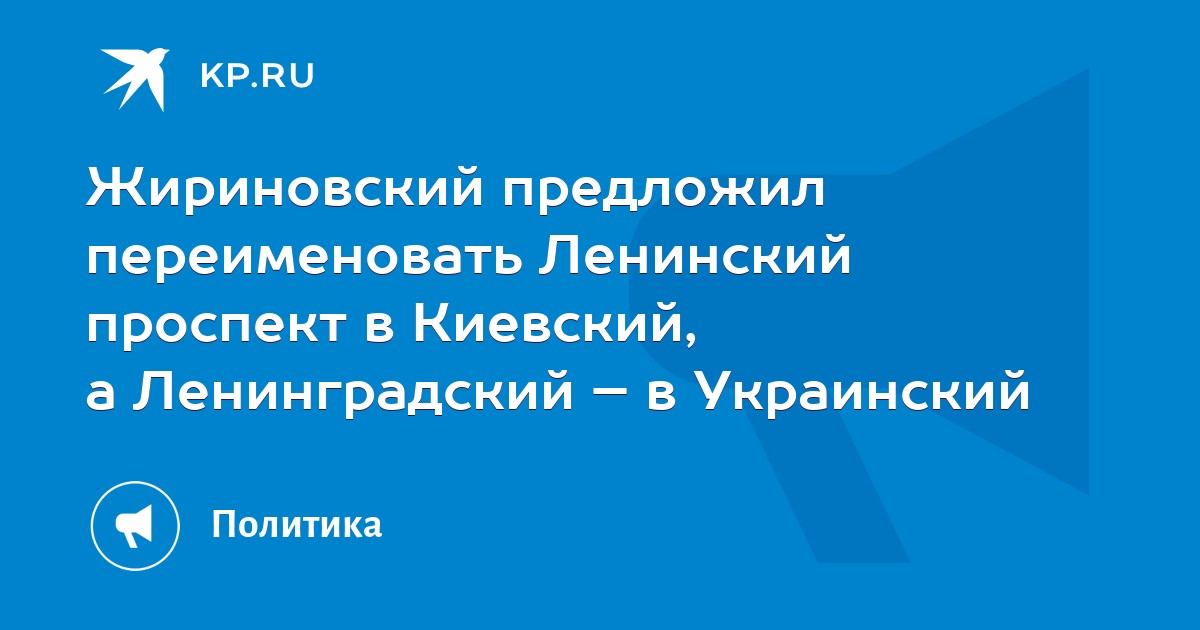«Мы не будем переименовывать, а наоборот добавим ещё. У нас есть станция метро «Киевская», Киевский вокзал, сделаем ещё Киевский проспект. Ленинский проспект в столице переименуем в Киевский, а Ленинградский проспект переименуем в Украинский. Будем называть улицы и площади не только в Москве, но и в регионах всеми городами Украины, чтобы Львовская была, Житомирская», — сказал он в интервью РСН.