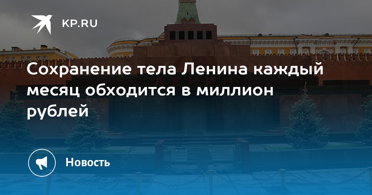 Стало известно, в какую сумму обходится бюджету сохранение забальзамированного тела Владимира Ленина. В 2016 году на эту цель выделили 13 миллионов 81,5 тысяч рублей, сообщается на портале госзакупок.