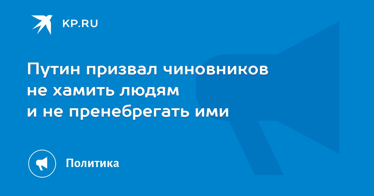 "Никогда не допускать никакого хамства, заносчивости, пренебрежения к людям на любом уровне - и на самом верхнем, и на самом нижнем, муниципальном, потому что это, во-первых, вредно для страны, это несправедливо в отношении людей, это просто опускает всю партию ниже плинтуса", - цитирует Путина корреспондент "КП" Дмитрий Смирнов.