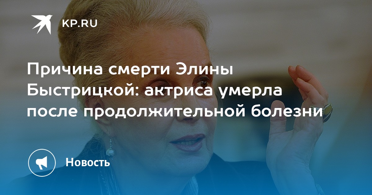 "Сегодня в больнице в реанимации после тяжелой, продолжительной болезни скончалась звезда театра и кино Элина Быстрицкая", - приводит ее слова РИА Новости.