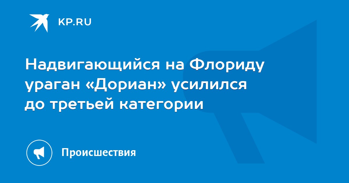 Надвигающийся на Флориду ураган «Дориан» усилился до третьей категории – из пяти возможных. Об этом в пятницу, 30 августа, сообщил Национальный центр по наблюдению за ураганами США, уточнив, что ураган набирает мощность, и когда он достигнет побережья штата, усилится до четвертой.