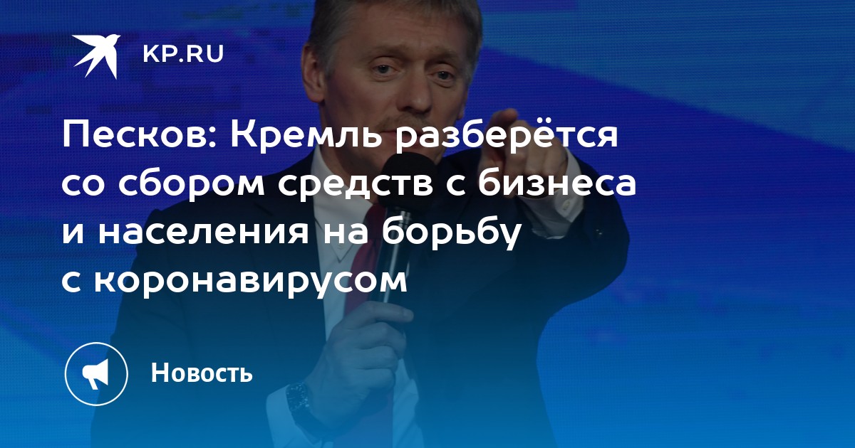 Пресс-секретарь президента России Дмитрий Песков заявил, что Кремль разберётся со случаями, когда губернаторы регионов собирают пожертвования с бизнеса и граждан на борьбу с коронавирусом.
