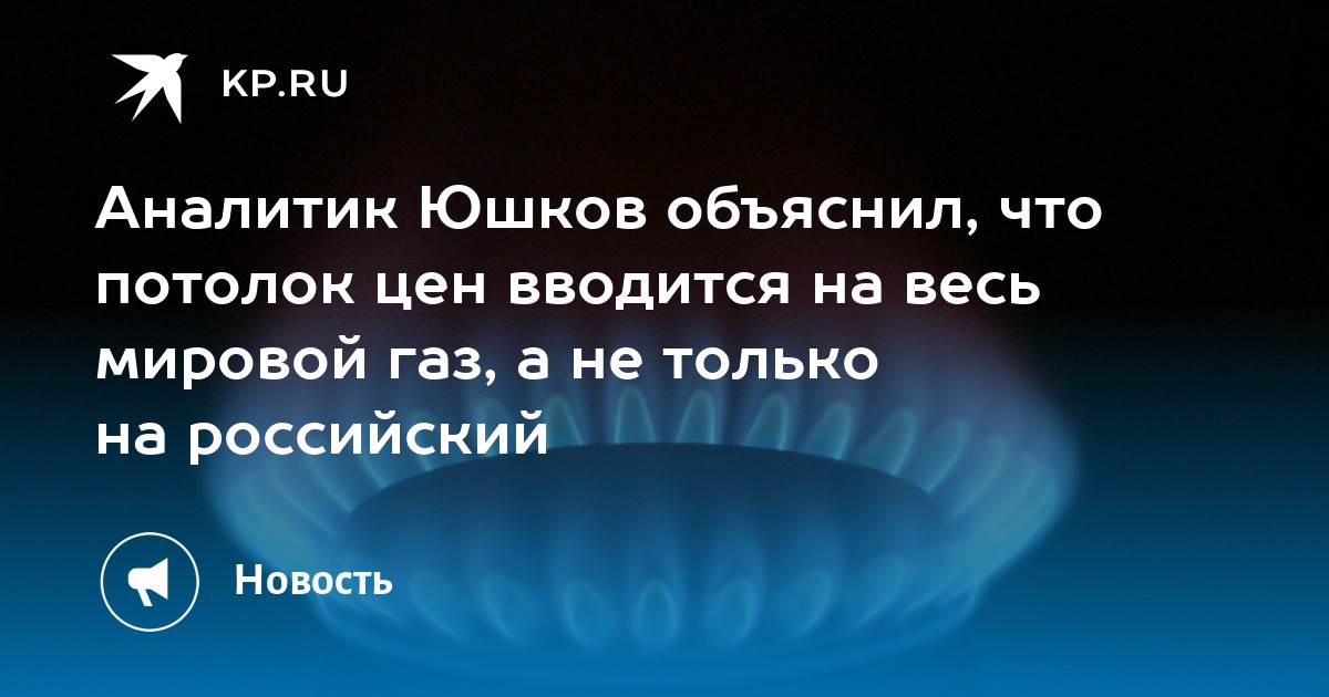 Эксперт Финансового университета при Правительстве РФ, ведущий аналитик Фонда национальной энергетической безопасности (ФНЭБ) Игорь Юшков заявил, потолок цен вводится на весь мировой газ, а не только на российский.