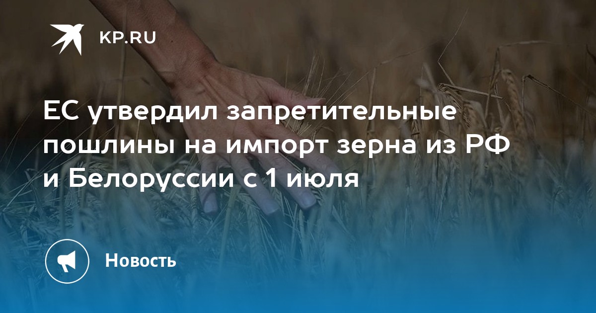 «Министры ЕС договорились значительно увеличить тарифы на зерновой импорт из России и Белоруссии с 1 июля», — написал он в соцсети X.