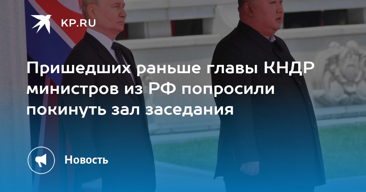 Российских министров, пришедших раньше главы Корейской Народно-Демократической Республики (КНДР) Ким Чен Ына, попросили покинуть зал заседания. Об этом свидетельствуют кадры прямой трансляции со встречи, размещенные на YouTube-канале «Комсомольской правды».