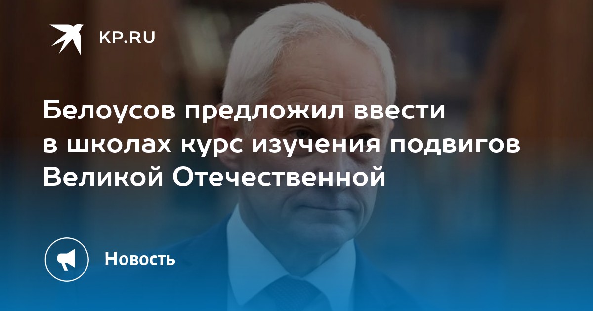 «Предлагается ввести в учебных заведениях курс о защитниках Отечества, участниках Великой Отечественной войны», - подчеркнул Белоусов.