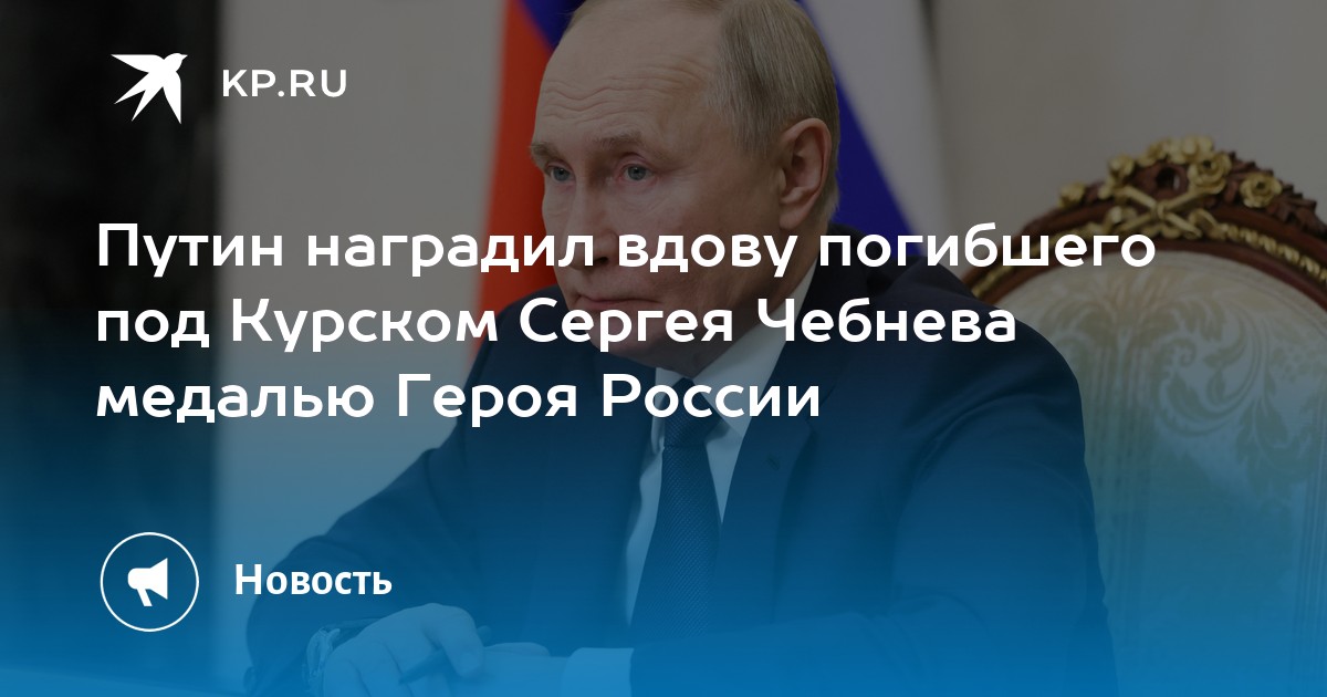 В Кремле прошла встреча президента России Владимира Путина с Ольгой Чебневой — супругой Героя России Сергея Чебнева. Глава государства с уважением вручил ей медаль «Золотая Звезда», которой её муж был удостоен посмертно за проявленный героизм во время обороны Малой Локни в Курской области.