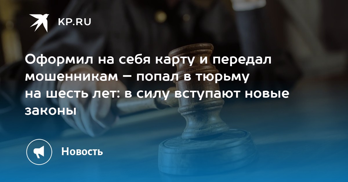 Теперь речь идет об уголовном правонарушении. Если человек до этого не был клиентом банка, но оформил на себя карту и передал ее мошенникам, ему грозит наказание в виде штрафа до 300 тысяч рублей или в размере дохода за период от 1 до 2 лет, обязательные работы сроком до четырех лет, а также до шести лет тюрьмы.