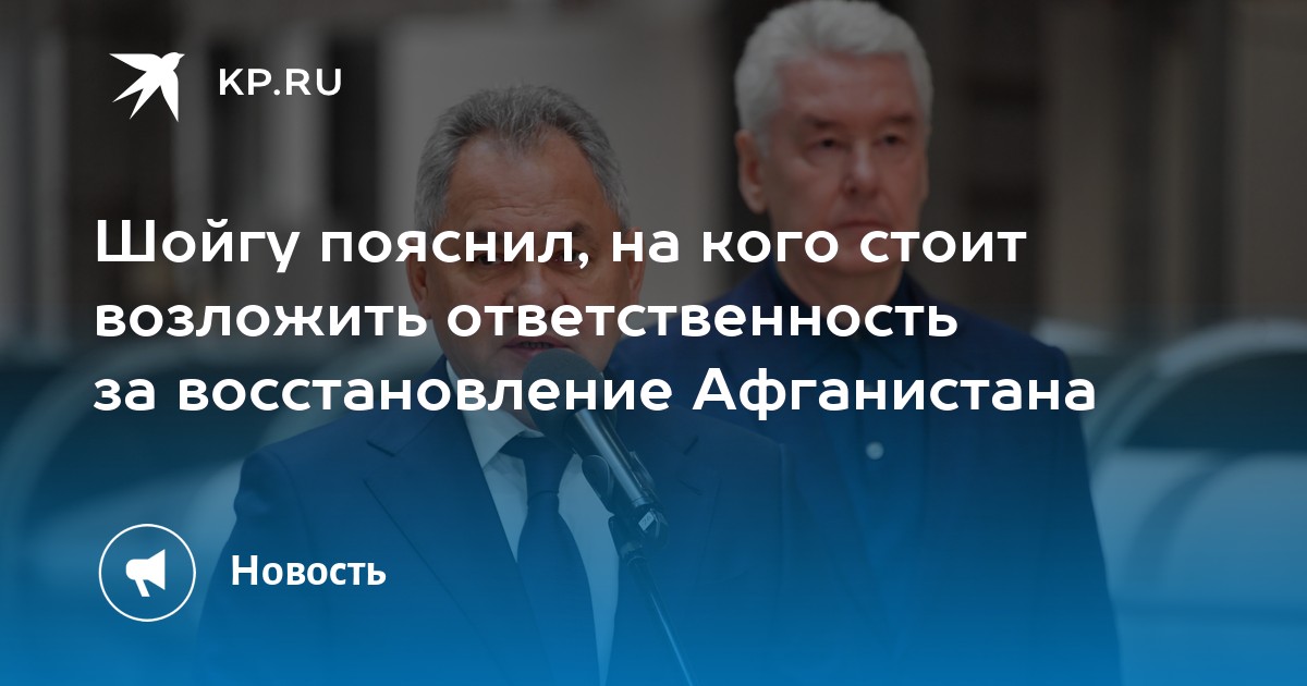 Глава Совбеза России Сергей Шойгу порассуждал о процессе восстановления "многострадального" Афганистана. По его мнению, вся ответственность должна лежать на странах Запада. Так Сергей Шойгу заявил в диалоге с "Российской газетой".