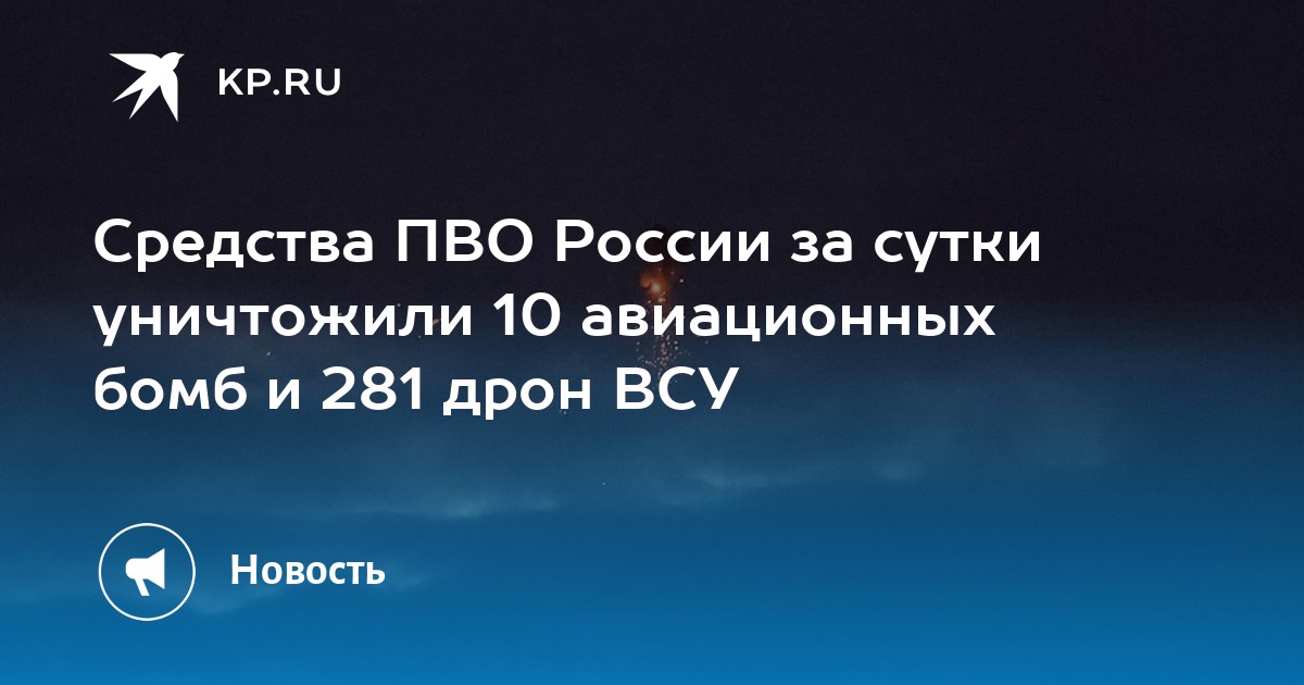 Министерство обороны Российской Федерации сообщило 28 апреля, что средства противовоздушной обороны РФ за сутки сбили десять управляемых авиабомб. Кроме того, силы ПВО РФ успешно выявили и уничтожили 281 аппарат беспилотного типа киевского режима. Сводка военного ведомства опубликована в "Максе".