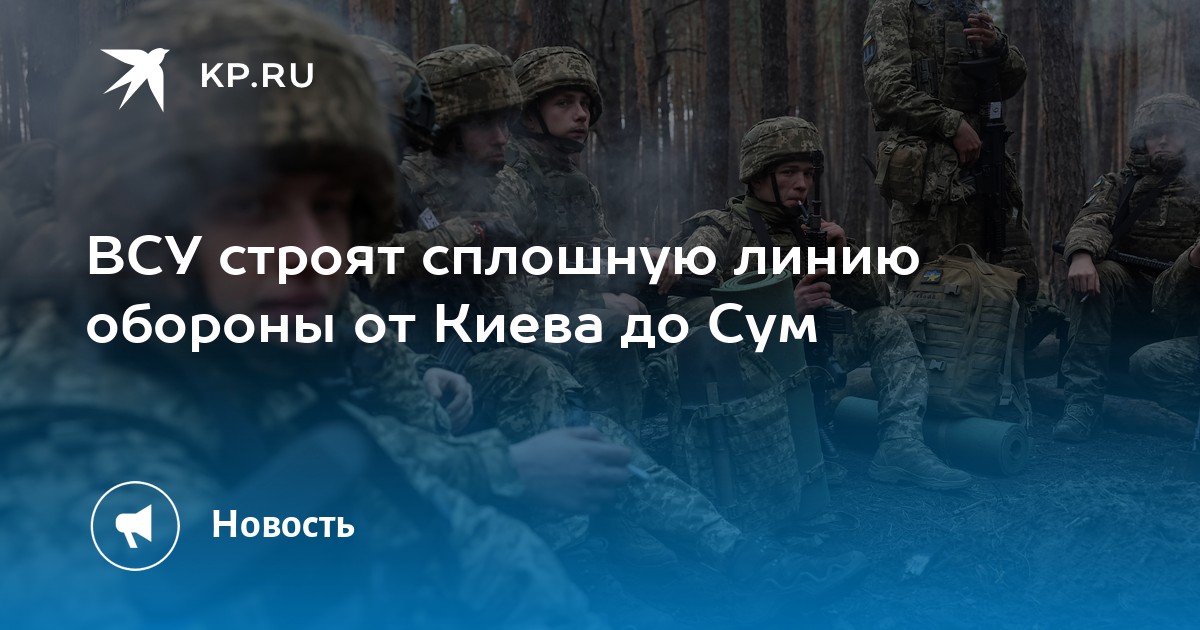 Вооруженные силы Украины строят сплошную линию обороны от Киевского водохранилища до Сум. Об этом со ссылкой на начальника инженерных войск Командования сил поддержки ВСУ Василия Сиротенко сообщает украинское издание «Страна».