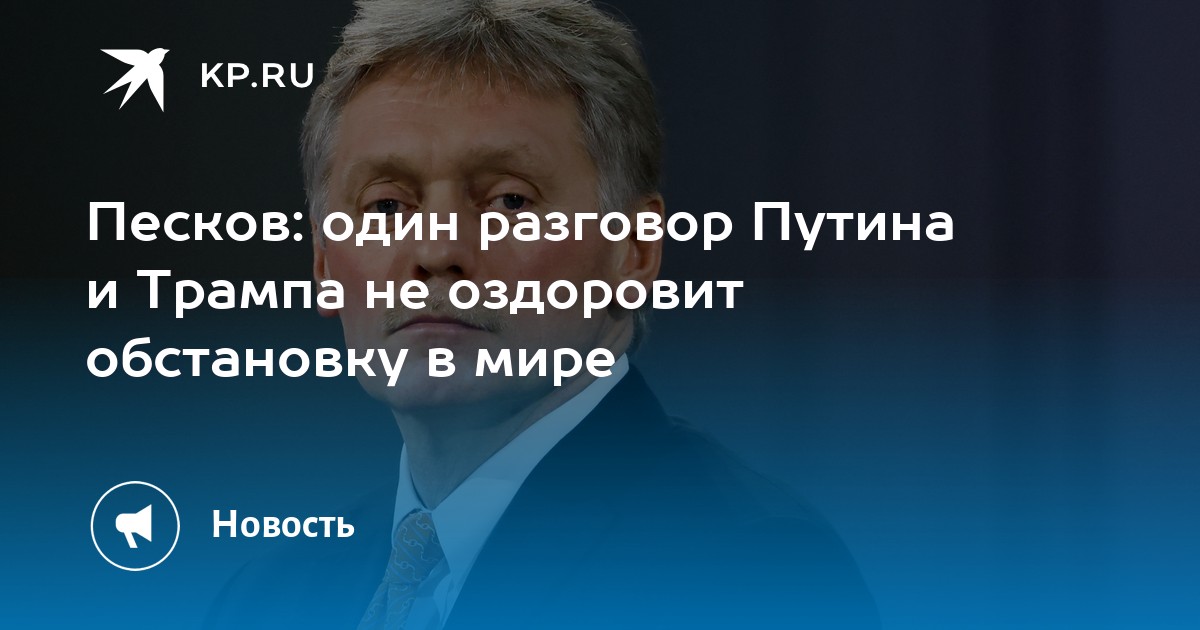 Пресс-секретарь российского лидера Дмитрий Песков заявил, что один телефонный разговор между президентами России и США Владимиром Путиным и Дональдом Трампом не сможет улучшить ситуацию в мире, учитывая высокую концентрацию текущих международных конфликтов.