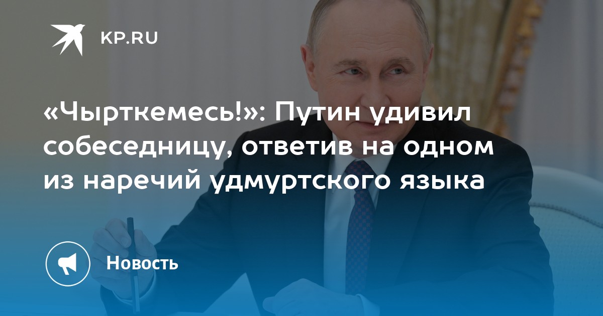 Президент не растерялся и в ответ повторил бесермянское приветствие: «Чырткемесь!». Собеседница оказалась немало удивлена этим и с улыбкой отреагировала, сказав «класс».