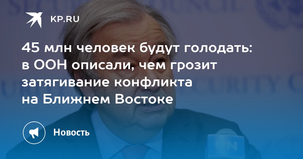 Конфликт на Ближнем Востоке и перекрытие Ормузского пролива из-за военной операции США и Израиля против Ирана грозит экстремальным голодом 45 млн человек. Об этом заявил генсек ООН Антониу Гутерриш.