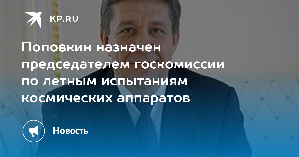 Новый глава Роскосмоса Владимир Поповкин назначен председателем госкомиссии по летным испытаниям пилотируемых космических комплексов. Ранее это пост занимал его предшественник Анатолий Перминов.