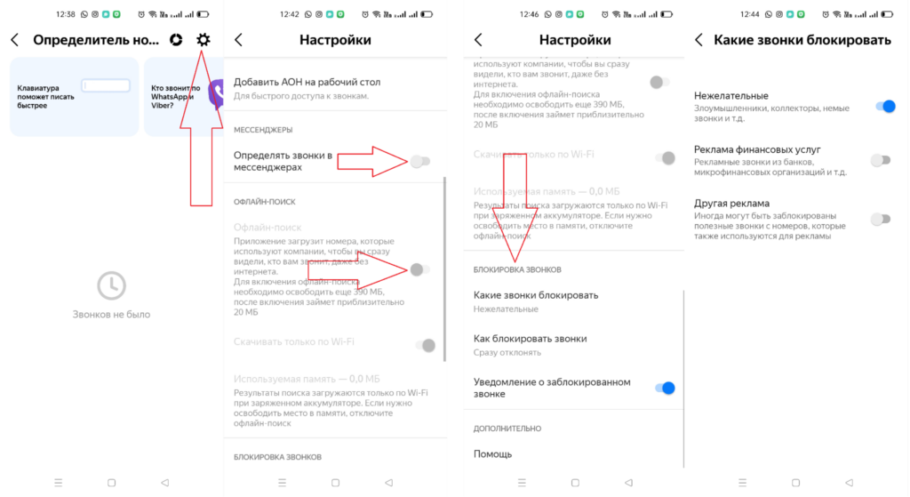 • проверить, активированы ли в настройках сервиса опции «Определять, кто звонил» и «Определять звонки в мессенджерах»;