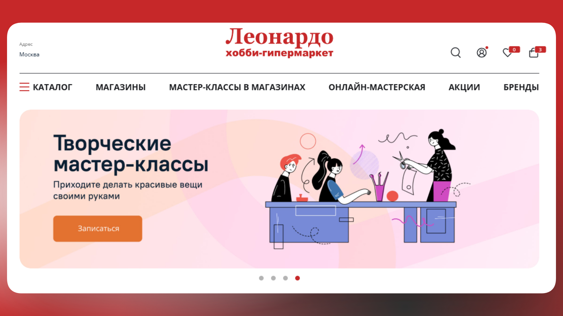 Параллельно с розничными точками работает полноценный интернет-магазин на сайте leonardo.ru — со своим каталогом, акциями и системой промокодов. Онлайн-магазин охватывает весь ассортимент сети и предлагает несколько вариантов доставки: курьерскую, через Почту России или самовывоз из ближайшего магазина. Часть акций и предложений доступна исключительно в онлайн-канале.